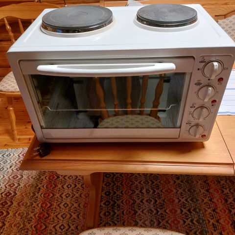 Kompakti pieni pöytäuuni/-grilli. Leveys 39,5cm, korkeus 25cm ja syvyys 30cm. Käyttöohjeet mukana.