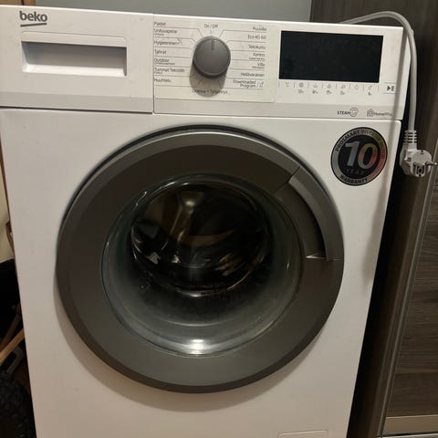 Logik edestä täytettävä 8kg pyykinpesukone. Väri valkoinen. Suoraan käytöstä myyntiin
