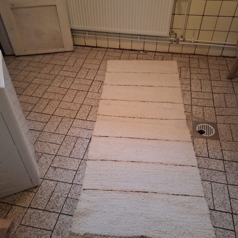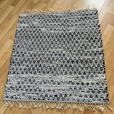 2 kpl räsymattoja, toinen matto 84×172, itsekudottuja