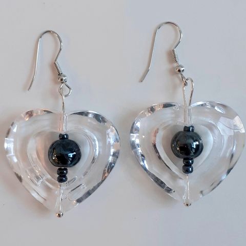 Ketjumaiset sydänkorvikset muovista. Väri vaiheilee prismaattisesti pääasiassa mustasta tummanlilaan. Korumetalli-piikit. Sopivat käytettäväksi arkena tai juhlissa. 🖤 💜