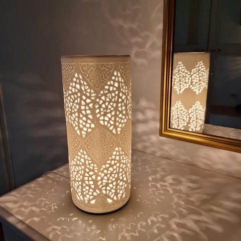 Ruskean värinen pyöreä valoköynnös. Toimii kahdella AA-paristolla.