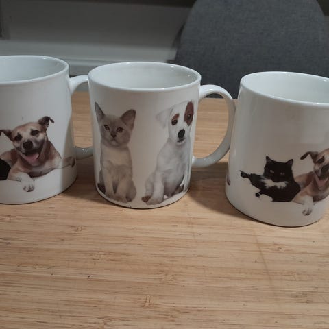 Hyvin säilyneet ehjät, siistit muki ja pyyhe.