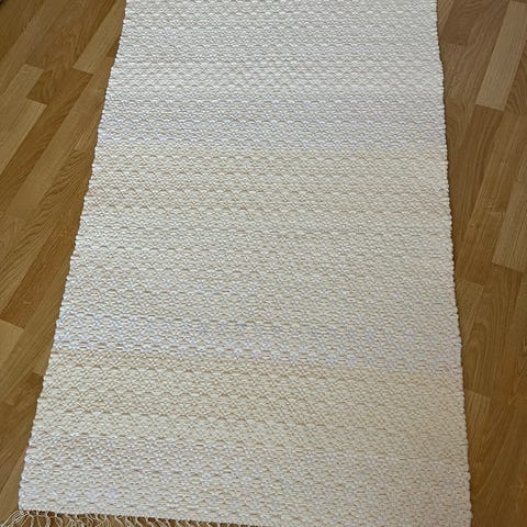 3 räsymattoa, toiset matot 80×56 ja 80×86, itsekudottuja