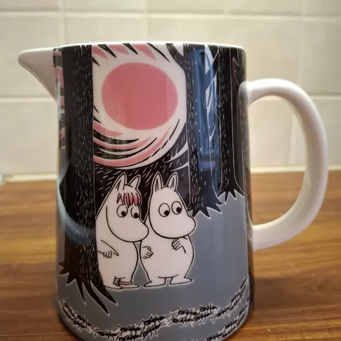Arabia Muumi kannu. Muumi kaadin, Sydänystävät Muumi 80 -painatus. 1 litra. Friends forever. Käyttämätön.