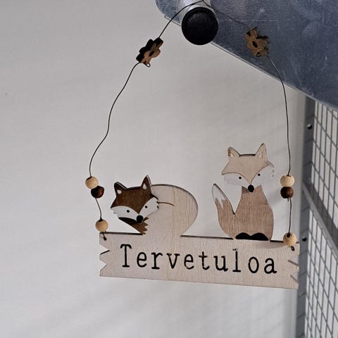 Ihana "tervetuloa meidän kotiin" kyltti (30cm halkaisija) mihin pystyy vaihtamaan kuvakkeet helposti magneettikiinnityksellä. Saatiin joululahjaksi uuden niin tämä menee kiertoon. Lähetyskulut 3.90 eur.