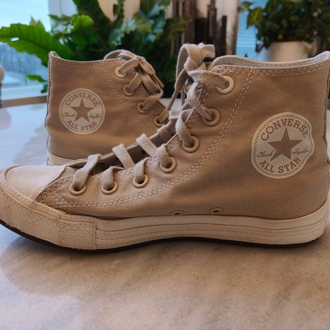 Myynnissä Converse All Star merkkiset kengät. Todella siistit ja hyväkuntoiset, koska ollut vähällä käytöllä. Hieman pohja väriääntynyt tummista sukista kenkien sisäpuolella sekä merkkiteksti kulunut kenkien takaosasta ulkopuolelta. Muuten ei mitään moitittavaa ja ulkopohjat loisto kunnossa, koska näillä kävelty tosi vähän.