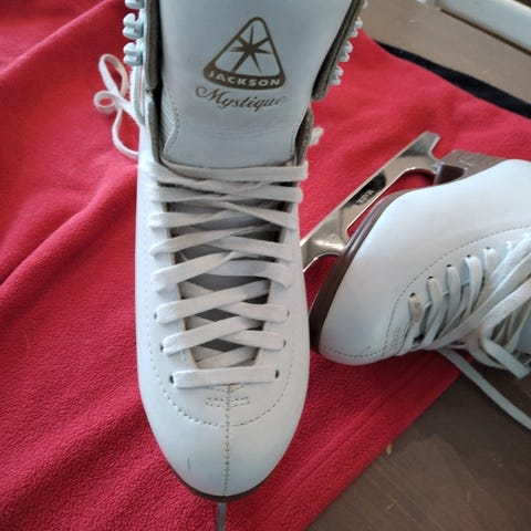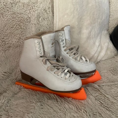 Almost new figure skates. Some scratches on the blades due to sharpening.