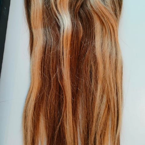 Uudet käyttämättömät hiusten pidennykset yksi ponnaripidennys ja 5kpl klipsl pidennyksiä pituus noin 65cm 15 e plus postikulut