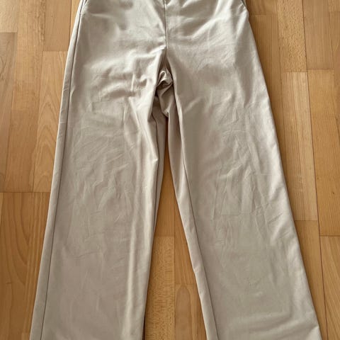 Housuissa joustava vyötärö ja suorat lahkeet.