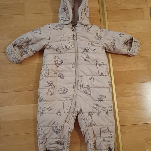Kuvan mukainen H&M beige karvavuorellinen toppahaalari koossa 74 cm.