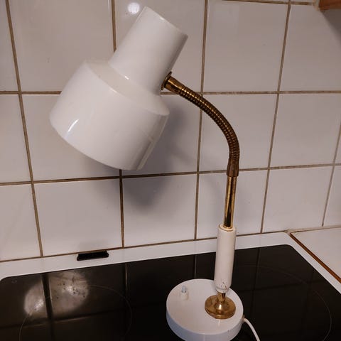 Stjärnmarken Armatur FYP 819 toimiva ja siisti pöytävalaisin. Valaisimessa on simpukan muotoinen musta jalka ja valkoinen pallomainen lasikupu. Valaisin on suunniteltu yhdelle enintään 25 W lampulle (merkinnän mukaan Max 1x25 W). Sopii esimerkiksi pöytä- tai tunnelmavaloksi sisätiloihin. Valmistettu Ruotsissa. Vintage 1980-luvulta. Mieluiten nouto keraamisen materiaalinsa vuoksi.