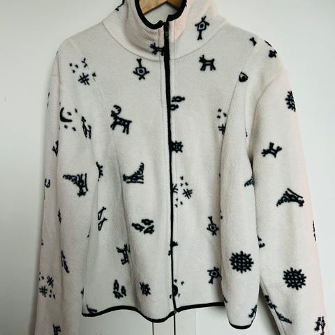 Vintage susiaiheinen fleecetakki, lämmin ja pörröinen. Koko l, pituus noin 72cm ja kai kai mitta noin 66cm. Unisex malli. Muuten oikein siisti, mutta vetoketjun vedin irronnut, olen käyttänyt ilman mutta suutarilla voi helposti korjauttaa