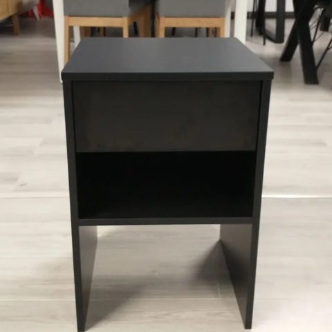 Tämä malli esiltä. Yöpöydässä on kolhuja.