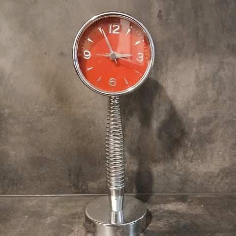 Muovikuorinen pöytäkello, jossa herätystoiminto, 1980-luvun tuote