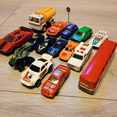 Osa autoista on kunnoltaan kuin uusia,joissain autoissa on leikin jälkiä.