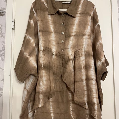 Käyttämätön luonnonpellavan värinen pellavapusero, kokoa L