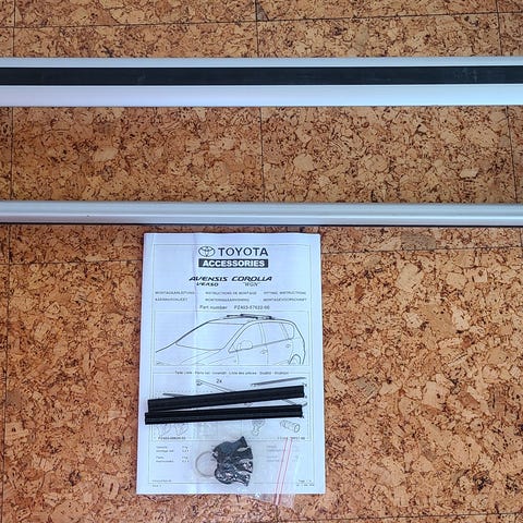 Alumiiniset kattotelineen poikkiputket ajoneuvoon. Mukana kuusioavain sekä päätysuojat ja avaimet. Sopii ainakin 2023 Toyota Corollaan.