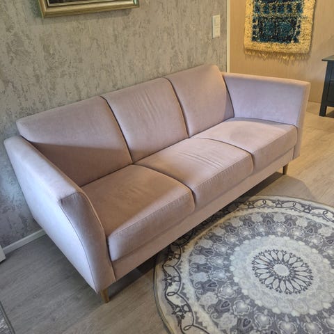 3-istuttava: syvyys 91cm ja leveys 271cm. Ja 2-istuttava: syvyys 91cm ja leveys163cm. Istuma-syvyys kummassakin 56cm.