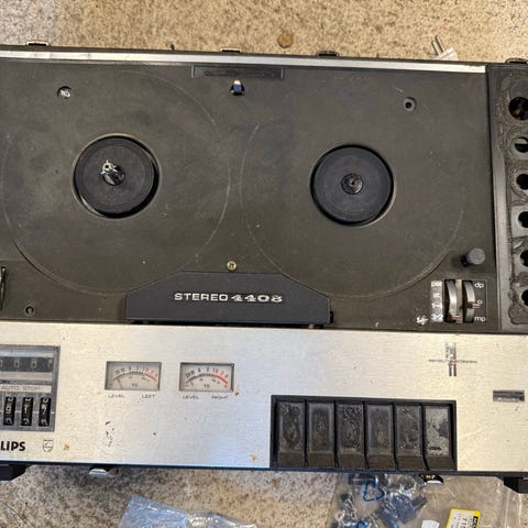 Myynnissä Philips merkkinen kelamankka. Nauhurissa on hyvä ääni ja kelaukset toimivat. Nauhuri on 4-raitainen ja toimii yleisellä 9.5 nopeudella. Asennettu uudet remmit. Äänitys toimii ainakin mikillä ( ei mukana, testiä tallenettu nauhalle )