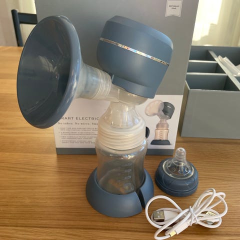 Lola & Lykke sähkökäyttöinen rintapumppu. Pumpun osat juuri uusittu, mukaan 24mm suppilo. Toimii moitteettomasti, käytetty imetyksen ohella.
