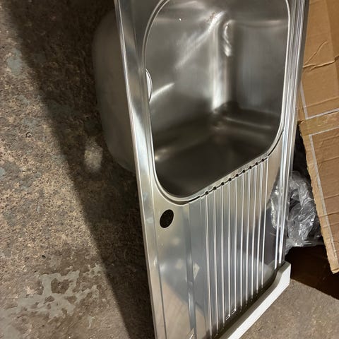 Käyttämätön tiskiallas, materiaalina RST / ruostumaton teräs.