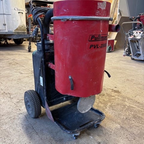 Pullman PPL 1300 A teollisuusimuri. Punainen, pyörillä liikuteltava malli, jossa sylinterimäinen säiliö ja useita kantokahvoja. Imurissa on pitkä virtajohto ja letku, jotka kiinnittyvät laitteen yläosaan. Tarkoitettu teolliseen ja ammattikäyttöön esimerkiksi rakennus‑ ja korjaamotiloihin pölyn ja roskien imurointiin. Käyttöjännite ja tehotiedot löytyvät laitteen tyyppikilvestä.