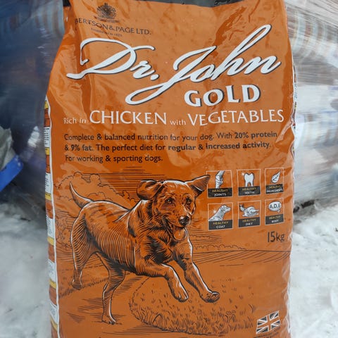 Koiran kuiva ruoka. Paketti avattu,jäljellä on 2,5kg.