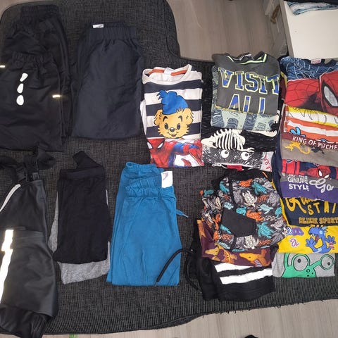 Joissain vaatteissa haalistumaa, mutta ehjää ja siistiä. Housut hyväkuntoisia, ei ohentumaa polvissa.