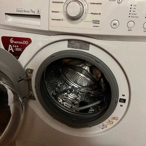 Myydän LG 7kg edestä täytettävä pesukone remontin tieltä.