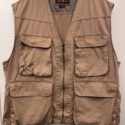 Hi there .this vintage vest is looking for new home .Rockdal made of thick strong canvas with soft liner fabric from inside.come with multiple pockets and could be for hunters or fishermen.in very good condition.L size.message if interested?free shipping.have great day