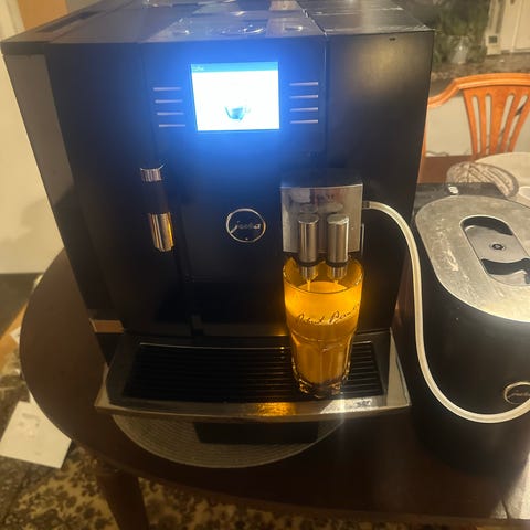 Ammattillanen automaattinen kahvikone. Tällä hetkellä tekee äärimmäisen hyvää papukahvi ja espresso. Uutena maksoi 6000€