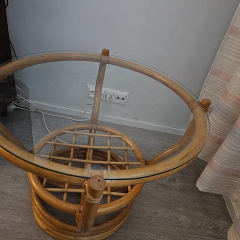 Parolan rottingin pyöreä sivupöytä. Ollut meillä vain koristeena.