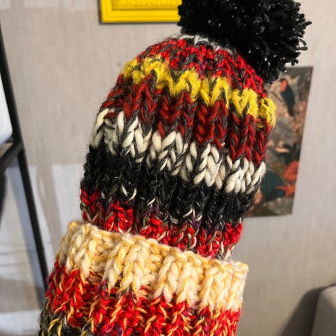 Paksusta villalangasta neulottu muhkea pipo. Koko one size, venyy hyvin.