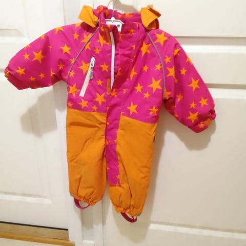 Jonathan haalari, koko 74, unisex-malli. Väri farkunsininen. Haalarissa, edessä alas asti vetoketju ja painonapillinen tasku. Soveltuu käyttöön noin 6–9 kuukauden ikäiselle lapselle koosta riippuen.