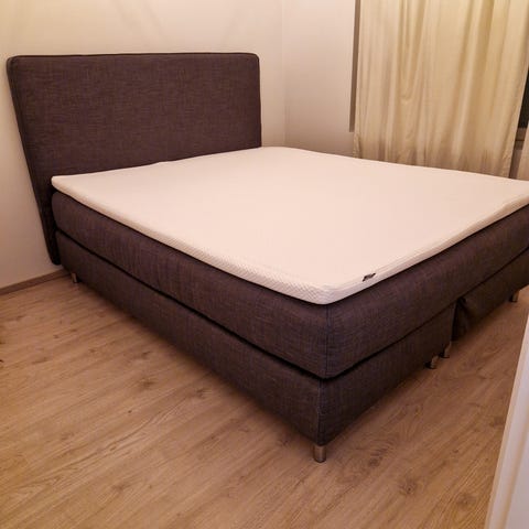 Unituli jenkkisänky. Sängyssä on tummanharmaa verhoiltu runko ja korkea, pehmustettu pääty, jossa irrotettavat tyynyt selkänojaksi. Mukaan tulee käytännössä uusi Ikea Nyläget sijauspatja, ovh 350 € (ollut toisen petarin alla).