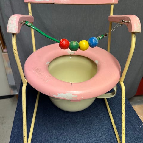 Myydään pieni metallipotta, joka on ostettu Hämeenlinnan vankilan poistomyynnistä v. 2018, kun vankila suljettiin sisäilmaongelmien vuoksi. Vankila toimi vv. 1972 - 2018. Potta oli käytössä vankilan perheosastolla, jossa tuomiota suorittava äiti sai pitää 1-2 vuotiaan lapsen mukanaan. Perheosasto lakkautettiin v. 2010 ja äiti-lapsi-parit siirrettiin Vanajan vankilaan.