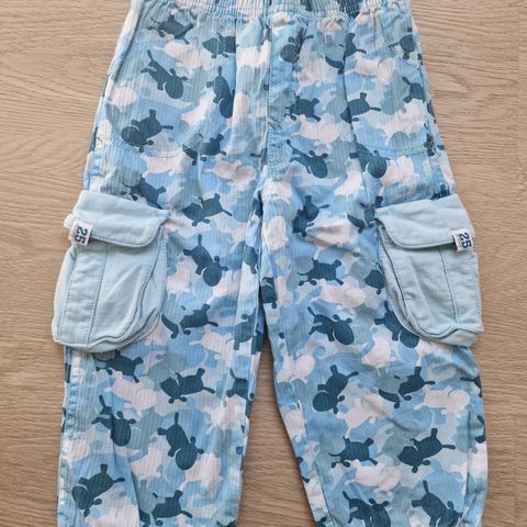 Taskulliset kukkahousut. Koko 92. Nimikoitu. Tahrattomat ja ehjät.