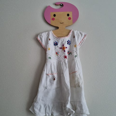 Aivan ihana lappumekko. Säädettävät olkaimet. Oli meille väärään aikaan sopiva.