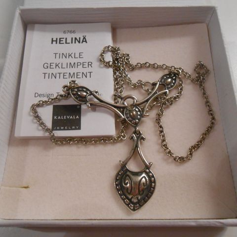 Kuvan mukaisessa kunnossa kalevala korun Plise kaulakoru/solki 925 hopeaa. Ketjun mitta: 44,5cm. Korun halkaisija 5cm.