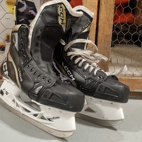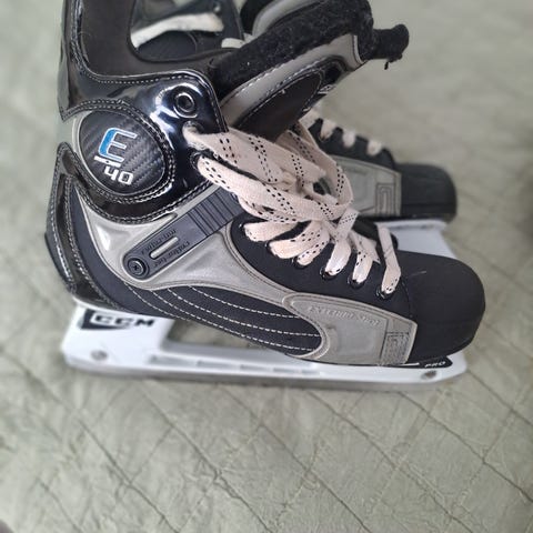 CCM jääkiekkoluistimet, koko 45. Väri musta valkoisilla nauhoilla. Terät jääkiekkokäyttöön soveltuvat luistinterät. Sopivat aikuiselle tai isojalkaiselle nuorelle jääkiekko- tai harrastekäyttöön.