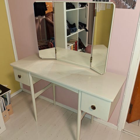 Tästä vintage pöytä,maalaa puuosat valkoiseksi ja saat maailman tyytyväisimmän käyttäjän👍L100,K133,S45
