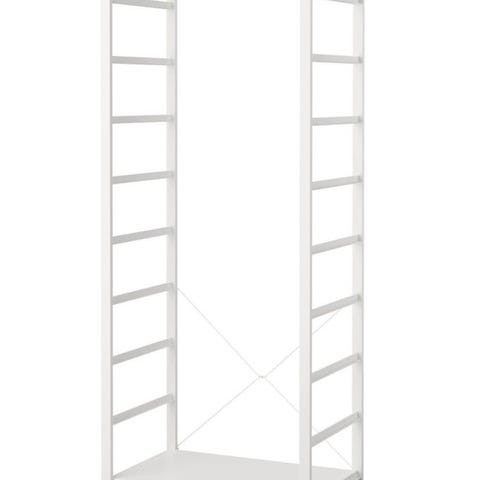 Myyn IKEAn säilytysjärjestelmän. Kyseessä on metallinen, seinään kiinnitettävä kokonaisuus, jossa on 7 kpl seinäkiskoja (196,5 cm), 5 kpl 40cm x 38cm hyllylevyä, 8 kpl 60cm x 38cm hyllylevyä, housuripustin 60 cm ja kolme henkaritankoa 60 cm. Lisäksi mukaan tulee riittävästi kiinnikkeitä jokaista hyllyä varten.