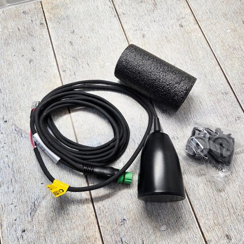 Uusi ja käyttämätön CPT-S pilkkianturi Raymarine Dragonfly-sarjan laitteille. Pisaran mallinen anturi on parhaimmillaan pilkkikäytössä. Se on helppo laittaa suoraan avantoon ja se on aina oikeassa asennossa roikkuessaan suoraan alaspäin. Johdon pituus 2,5m. Kaikuanturin taajuus High Chirp.