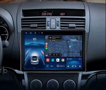 Auton multimedia-soitin, jossa suuri kosketusnäyttö ja kojelautaan sopiva kehys. Mukana useita johtosarjoja ja liittimiä laitteen kytkemistä varten sekä käyttöohje. Sopii auton viihde- ja navigointijärjestelmän keskusyksiköksi, kunhan liitännät ja mitat tarkistetaan omaan autoon sopiviksi. Käy Mazda 6 autoon. 08-2010 vm