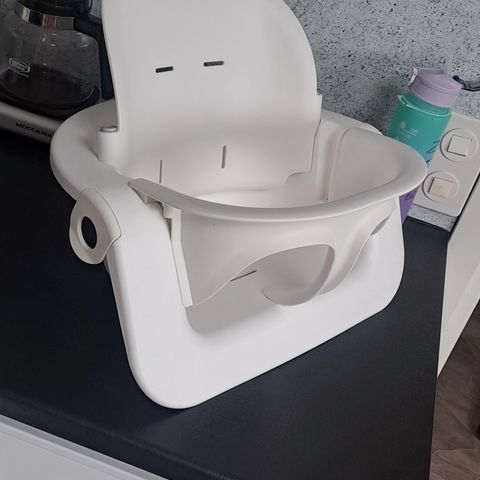 Ehjä ja yleisilmeeltään siisti Stokke Steps baby set. Naarmuja toki löytyy niin tarjottimesta kuin istuimesta.