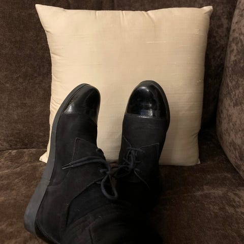 Vetoketjulliset ja tarralliset laadukkaat mokkanahkaiset nilkkurit, joissa täysin tasainen pohja. Sopii melko kapeaan jalkaan, erittäin mukavat ja hyvät kävellä! Mukana ergonomiaa parantavat Footbalancen pohjalliset.