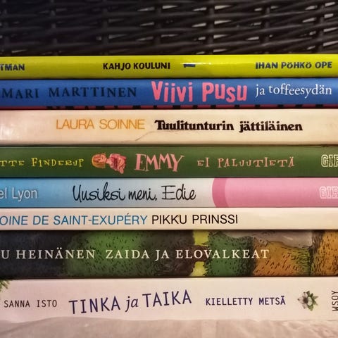 Sekalainen kirjapaketti, jossa useita nuortenkirjoja ja pokkareita eri kirjailijoilta. Esim hevoskirjoja, koirakirjoja, sarjakuvia, sekä jännitys ja fantasiakirjoja. Suurinosa kirjoista uudenveroisia ja osa luettu kerran.