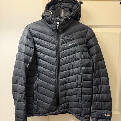 Peak Performance Frost Down tummansininen naisten kevytuntuvatakki, koko M. Erittäin lämmin ja mukava takki esim ulkoiluun talvella. Hyvässä kunnossa, yksi pieni reikä korjattu siististi ompelemalla (kuva). Ovh lähemmäs 300 e