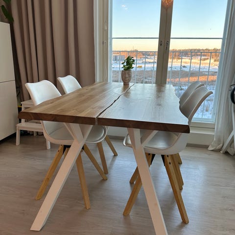 Pöydän pinta erinomaisessa kunnossa. Pinnassa 4 kerrosta Osmo color top oil.