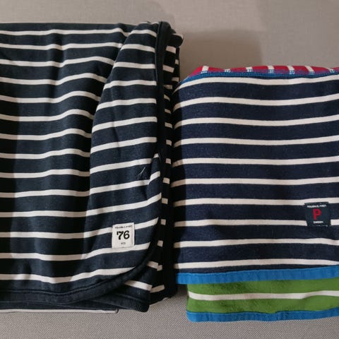 Uudenveroinen vauvan peitto pinnasänkyyn, isompi lasten peitto (enemmän käytetty mutta siisti), raidallinen patjansuoja ja Ikean kosteussuoja. Yhteensä 4€. Nouto Maikkulasta.